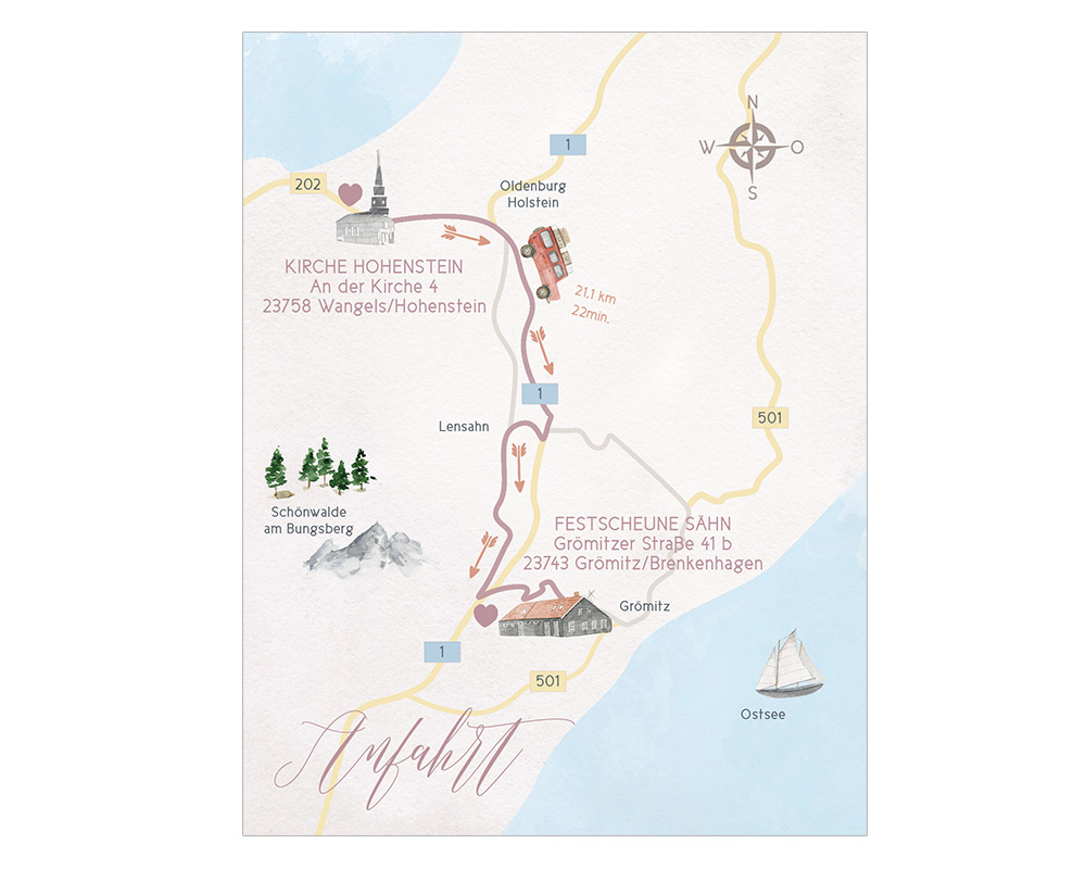 Ihr wollt, dass wir für Euch ganz persönlich eine Anfahrtsskizze zeichnen und auf Eure Karten drucken?