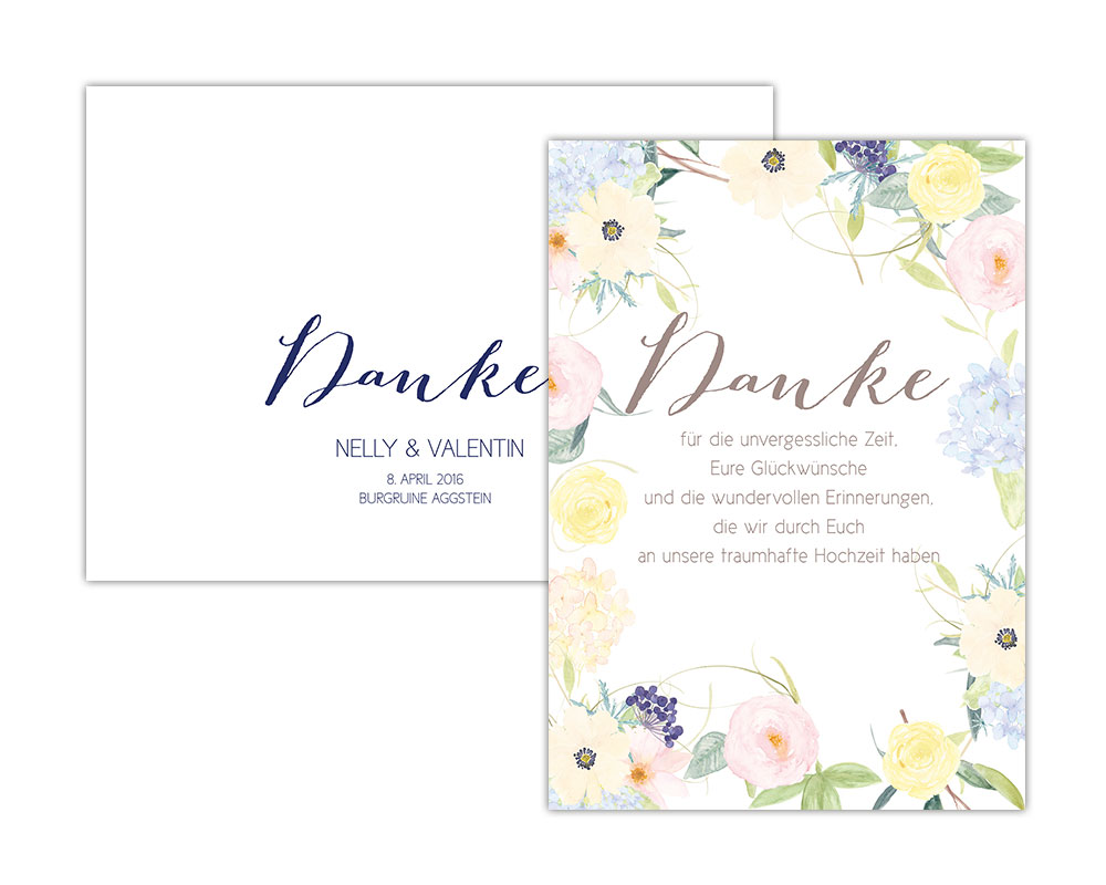 Sucht Euch eines unserer Designs aus (Ihr findet alle Karten unter “Dankeskarten”)