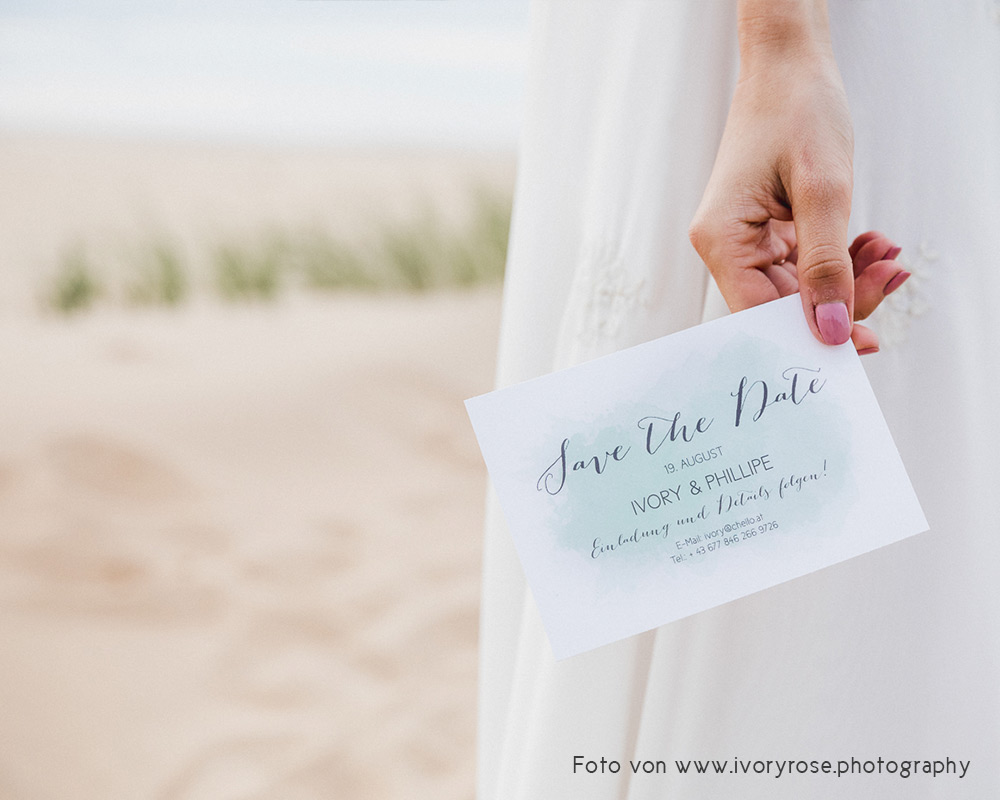 Der Vorteil eines Save the Dates ist, dass Ihr hier schon mal das Datum ankündigt, damit Eure Gäste sich den Termin freihalten können. Dadurch habt Ihr später weniger Stress und könnt in Ruhe alle Informationen, die Ihr für die Hochzeitseinladungen braucht, sammeln.