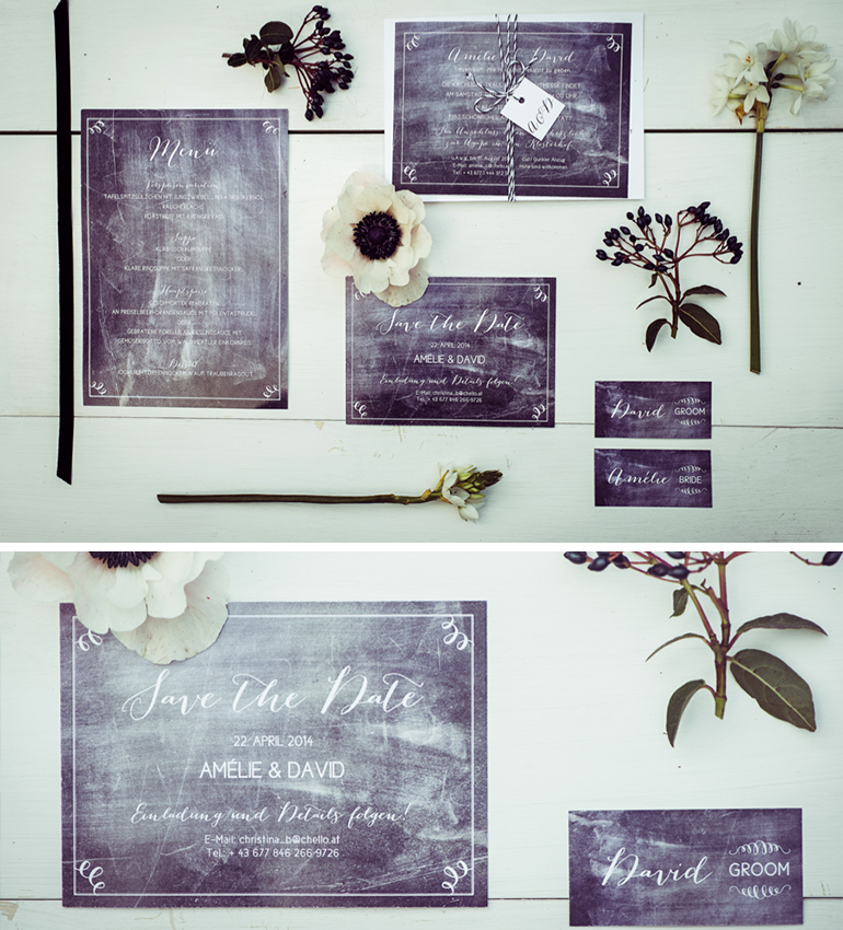 Unsere “chalkboard heaven” Kollektion strahlte bei diesem stimmungsvollen Scheunen Shooting – Hochzeitseinladungen, Menükarten, Namenskärtchen usw. im Tafellook <3