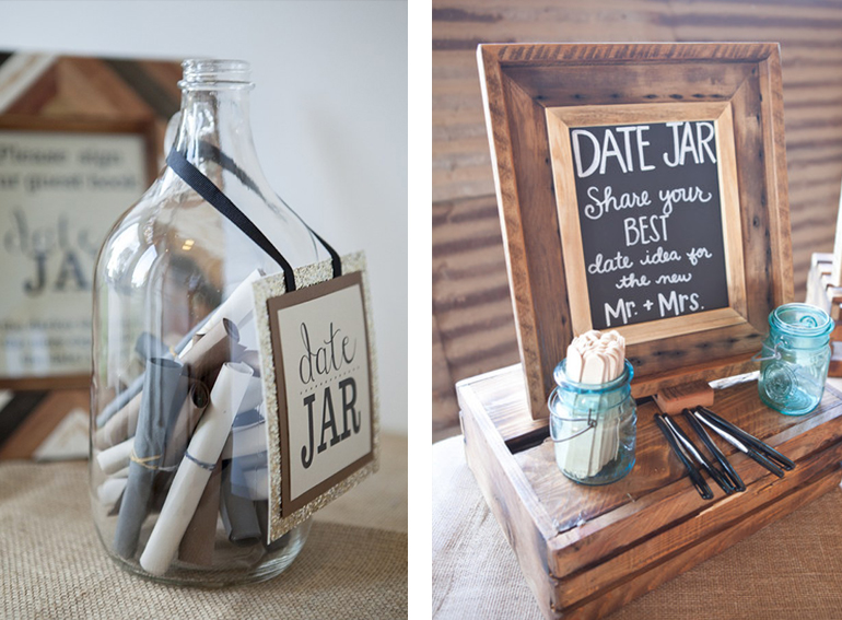 Ähnlich wie die Ratschlag-Kärtchen ist auch das “Date night jar”. In Einem Einmachglas könnt Ihr von Euren Gästen schöne Ideen für Eure Date nights sammeln, von denen es sicher auch nach der Hochzeit noch ganz viele geben wird. Wir haben weden schöne Gläser noch Holzstäbchen anzubieten, aber ein chalkboard Poster für die Date night Station können wir gerne für Euch machen im Shop (Gebt dort einfach Euren Wunschtext ein)
