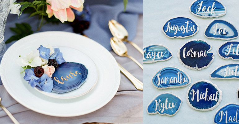 Achatscheiben als Namenskärtchen