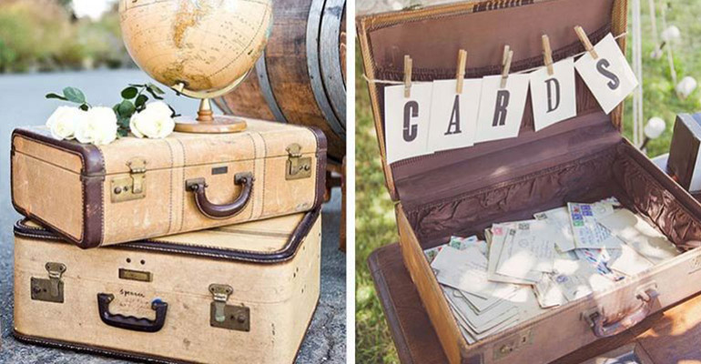 Die meisten Eurer Gäste werden Euch Umschläge geben. Das ist eine ganz schöne Menge an Umschlägen, die hier zusammenkommt! Zum Sammeln der Umschläge und Glückwunschkarten haben sich Koffer sehr bewährt, denn man kann die vielen Kuverts nach der Hochzeit ganz einfach nach Hause transportieren! Wenn die Gratulationen vorbei sind, könnt Ihr den Koffer zumachen und zb. auch gleich als Buffet- oder Sweettable-Dekoration einbinden. Habt Ihr ein Reisethema auch noch dabei? Umso besser! Online gibt es hier sehr viel Auswahl, überlegt Euch aber zuerst welche Größe Ihr braucht!