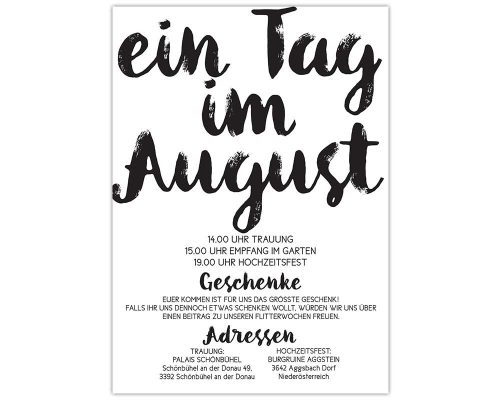 Kombiniert die Karte Infos mit den anderen Teilen der Hochzeitseinladung auf der rechten Seite –>