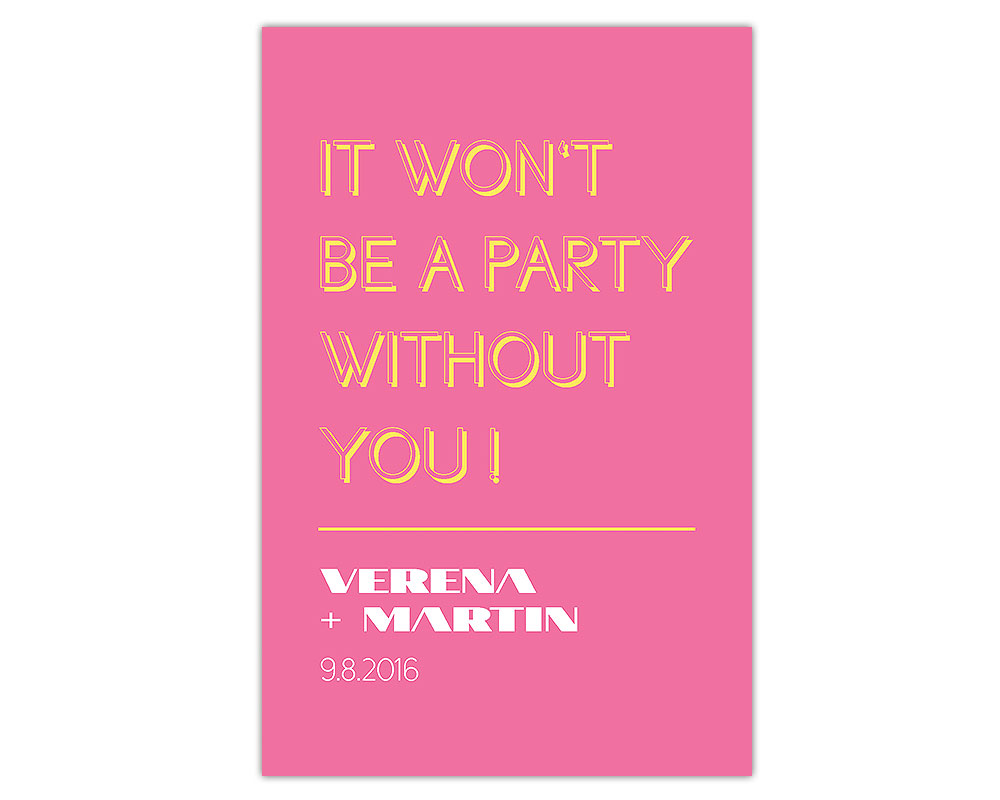 Für dieses Design (Kollektionsname) gibt es zusammenpassende Karten “Infos”, “Feier”, “Trauung” und ein “Tag”.