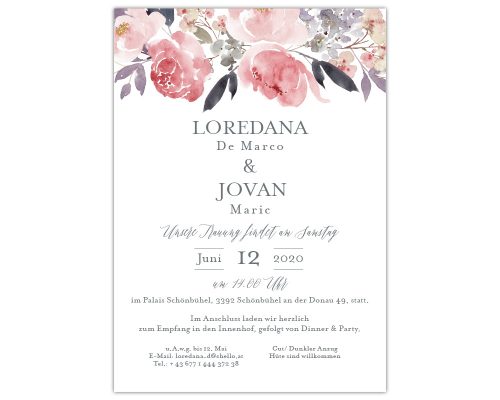 Für dieses Design (Kollektionsname) gibt es zusammenpassende Karten “Infos”, “Feier”, “Trauung” und ein “Tag”.