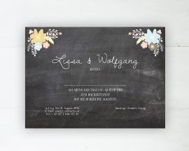Wenn Ihr Euren Einladungen noch eine “Antwortkarte” für Eure Gäste hinzufügen möchtet –> legt einfach zusätzlich die “Save the Dates” dieser Kollektion in den Warenkorb und schreibt Euren Wunschtext ins Textfeld. Eure Antwortkarten haben dann das Format A6 und werden von uns im dazupassenden Design erstellt.