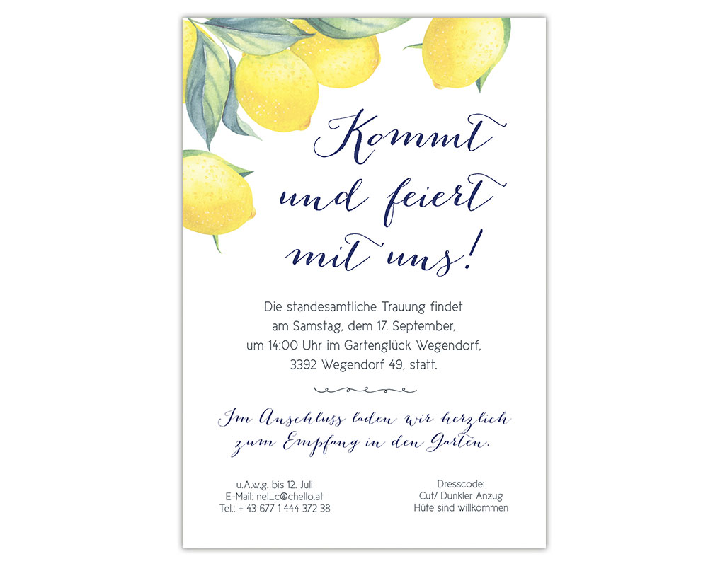 Wenn Ihr Euren Einladungen noch eine “Antwortkarte” für Eure Gäste hinzufügen möchtet –> legt einfach zusätzlich die “Save the Dates” dieser Kollektion in den Warenkorb und schreibt Euren Wunschtext ins Textfeld. Eure Antwortkarten haben dann das Format A6 und werden von uns im dazupassenden Design erstellt.