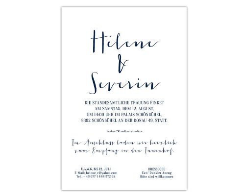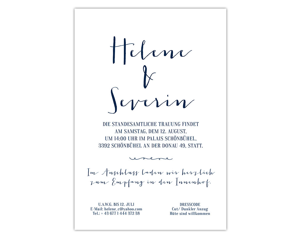 Wenn Ihr Euren Einladungen noch eine “Antwortkarte” für Eure Gäste hinzufügen möchtet –> legt einfach zusätzlich die “Save the Dates” dieser Kollektion in den Warenkorb und schreibt Euren Wunschtext ins Textfeld. Eure Antwortkarten haben dann das Format A6 und werden von uns im dazupassenden Design erstellt.