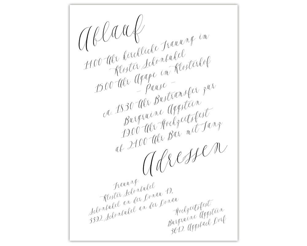 Kombiniert die Karte Infos mit den anderen Teilen der Hochzeitseinladung auf der rechten Seite –>