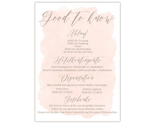 Kombiniert die Karte Infos mit den anderen Teilen der Hochzeitseinladung auf der rechten Seite –>