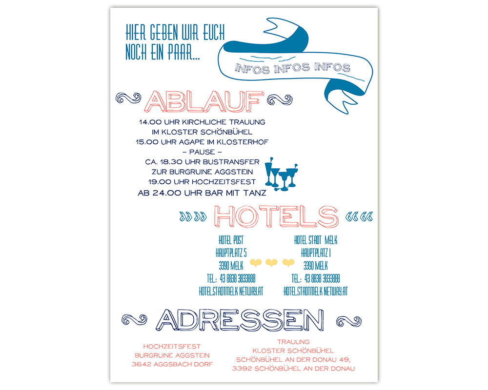 Kombiniert die Karte Infos mit den anderen Teilen der Hochzeitseinladung auf der rechten Seite –>