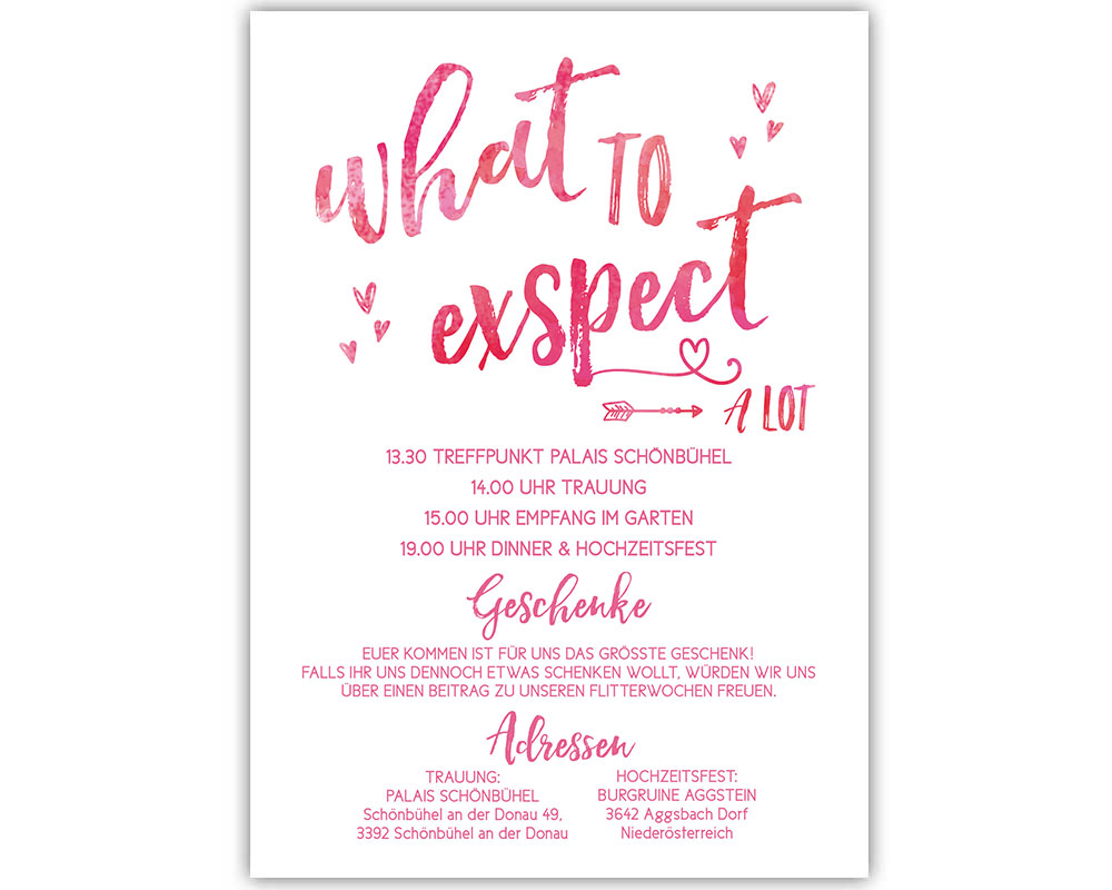 Kombiniert die Karte Infos mit den anderen Teilen der Hochzeitseinladung auf der rechten Seite –>