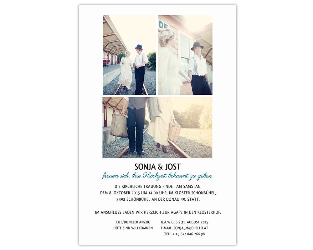 Kombiniert die Karte Trauung mit den anderen Teilen der Einladung auf der rechten Seite –>