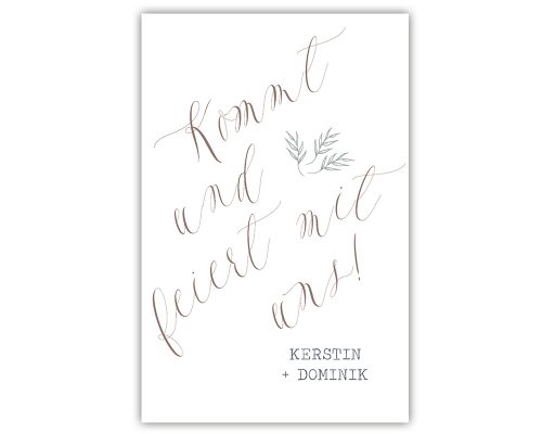 Wenn Ihr Euren Einladungen noch eine “Antwortkarte” für Eure Gäste hinzufügen möchtet –> legt einfach zusätzlich die “Save the Dates” dieser Kollektion in den Warenkorb und schreibt Euren Wunschtext ins Textfeld. Eure Antwortkarten haben dann das Format A6 und werden von uns im dazupassenden Design erstellt.