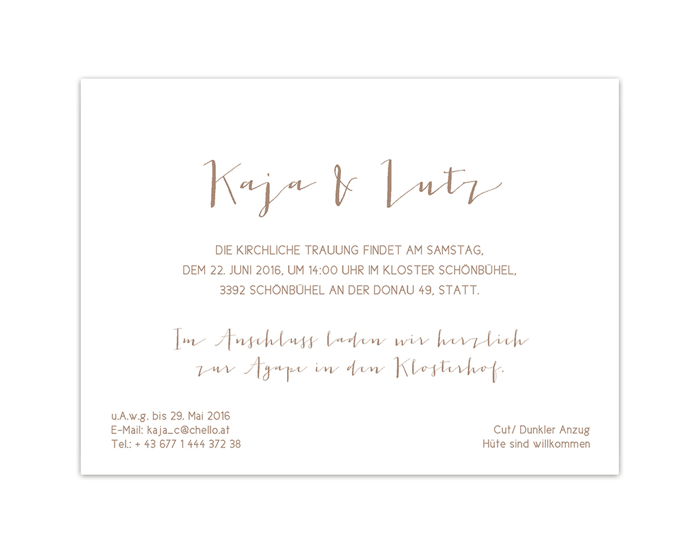 Kombiniert die Karte Trauung mit den anderen Teilen der Einladung auf der rechten Seite –>