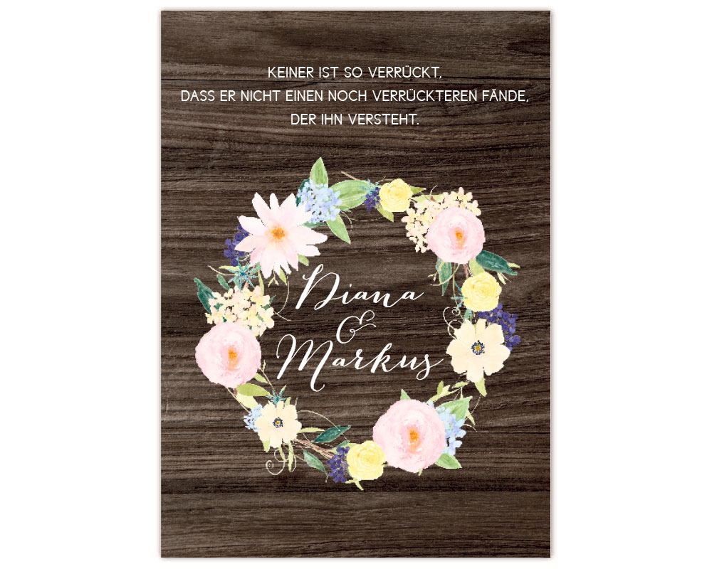 Für dieses Design (Kollektionsname) gibt es zusammenpassende Karten “Infos”, “Feier”, “Trauung” und ein “Tag”.